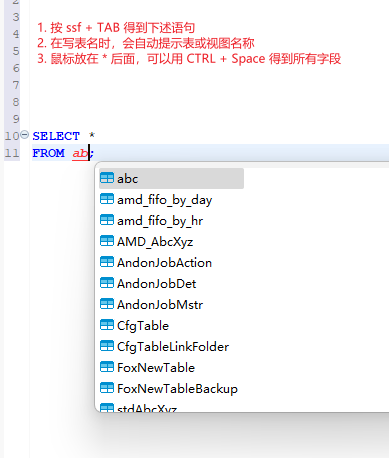 SQL 内容助理,用于自动完成代码或给出提示词,很有用,相当于 Sql prompt 的 TAB 键