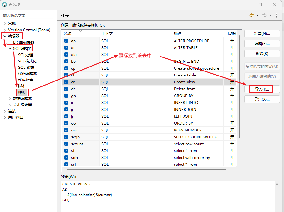 参照 SSMS 的 SQL Prompt 已经设置一些列的 Sql 自动生成模板,配置文件下载路径如下: templates.zip 。下载后解压得到“templates.xml”,再按下面的方法导入: