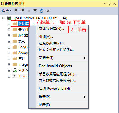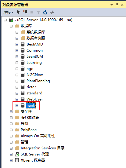 创建好之后可以在SSMS的资源管理器中看到该数据库