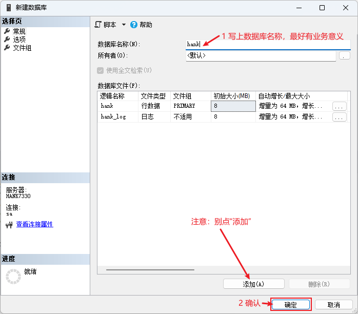 新建一个数据库是一件很简单的事,按以下二步确可创建