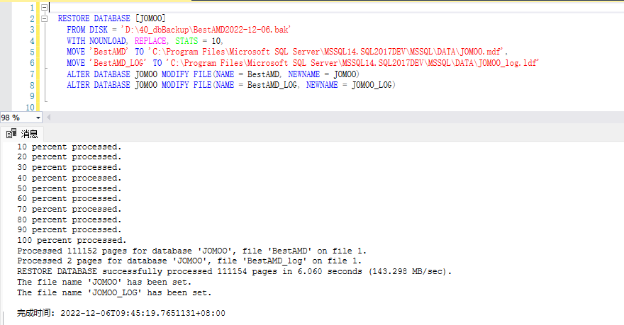 上述代码是将数据库名为”BestAMD“ 的备份文件,生成一个名称为